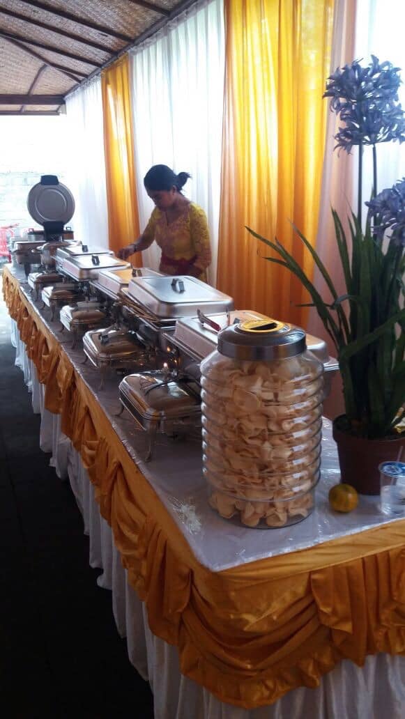 Risa catering melayani catering prasmanan, pada acara meminang pengantin (bali: ngidih nak luh), yang diadakan di Jalan Cempakasari 2, Sesetan, Denpasar. Acara berlangsung pada tanggal 18 Oktober 2017, dihadiri oleh kurang-lebih 350 undangan (350 porsi). Menu yang dihidangkan pada acara ini antara lain: blayag, ayam paprika, udang, sate lilit, sate tusuk, capcay, bakso, mie goreng, ayam kecap, air aqua, buah jeruk, kerupuk, dan sambal. Berikut adalah foto dokumentasi Catering Acara Meminang Pengantin di Denpasar