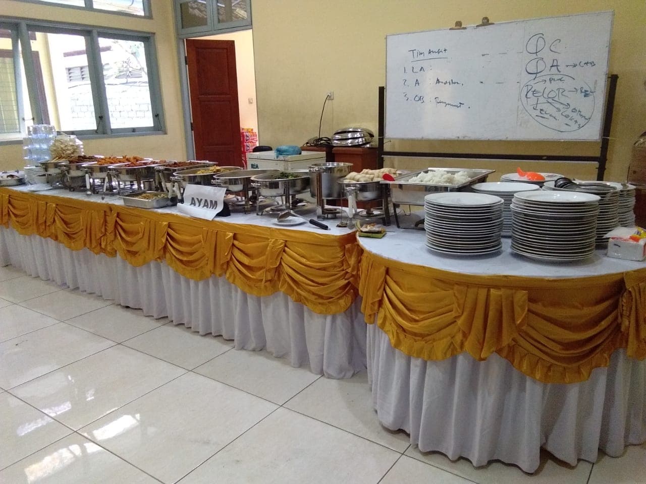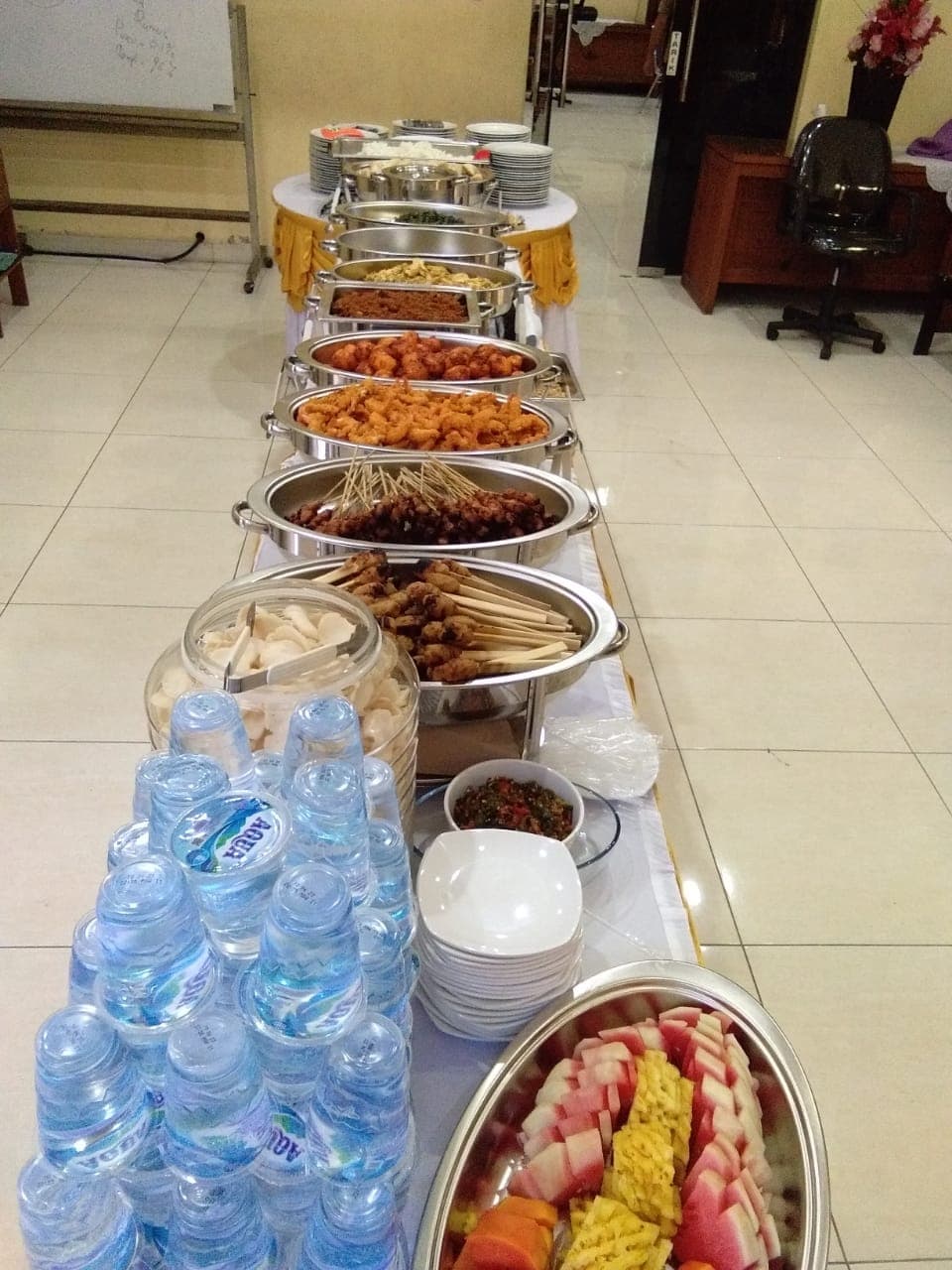 Kami memberikan pelayanan maksimal dengan layanan “Gratis dekorasi meja dan tempat makan” untuk setiap acara catering prasmanan / catering pernikahan. Tunggu apa lagi? Ayo segera hubungi kami: Telp/Whatsapp (087860206845).