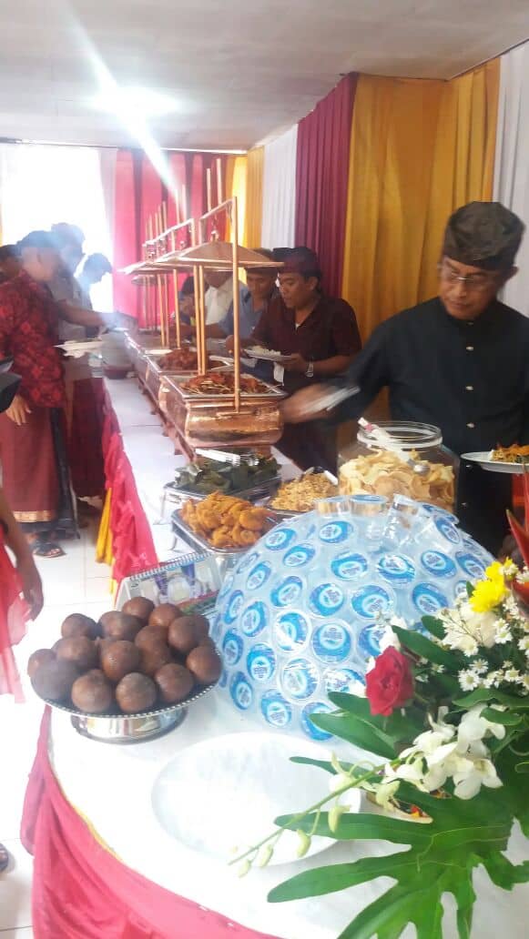 Risa catering melayani catering prasmanan, pada acara Catering Upacara Potong Gigi yang dilaksanakan pada tanggal 17 Desember 2017 di Bali. Pada acara potong gigi (metatah) ini, kami melayani jasa catering untuk melayani 600 porsi tamu undangan. Menu yang dihidangkan pada acara ini antara lain: cap cay, ayam paprica, mie goreng, mie bihun, lawar, urap paku, sate lilit, sate tusuk, udang, tum, udang, ares, ayam sisir, betutu, belut, gonde, aqua, bunga, krupuk, sambel, buah semangka, melon, dan es cream. Berikut adalah foto dokumentasi Catering Upacara Potong Gigi.