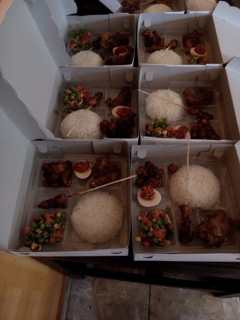 Kami menyediakan berbagai jenis paket nasi kotak. Kami menerima pesanan nasi kotak, yang terdiri dari beberapa paket.